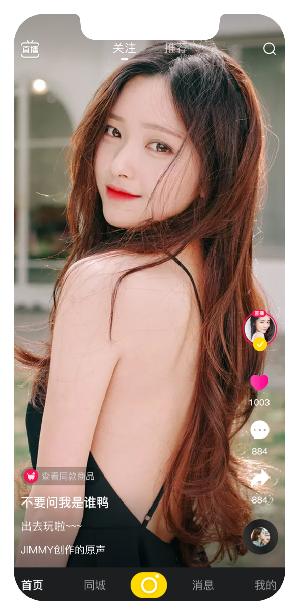 支持短视频、直播带货方式,完整的商城系统,支持查看订单详情、物流;支持同城定位,可自主切换城市,展示同城用户的拍摄作品;原生开发,安全稳定。