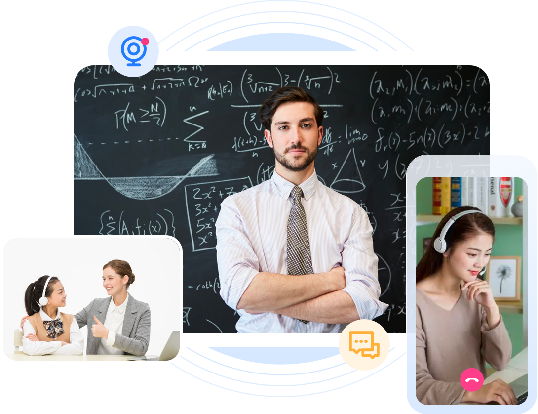 老师和学生进行一对一专属辅导,通过文档共享、互动白板、等多种功能与学生进行视频互动教学,专属辅导让学习更有效率。