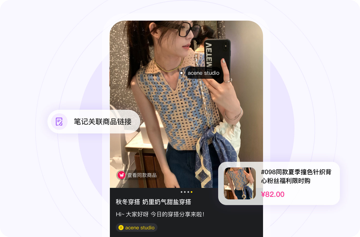 发布图文笔记时可选择关联商品链接,通过笔记形式带动商品热度,激发购买欲。
