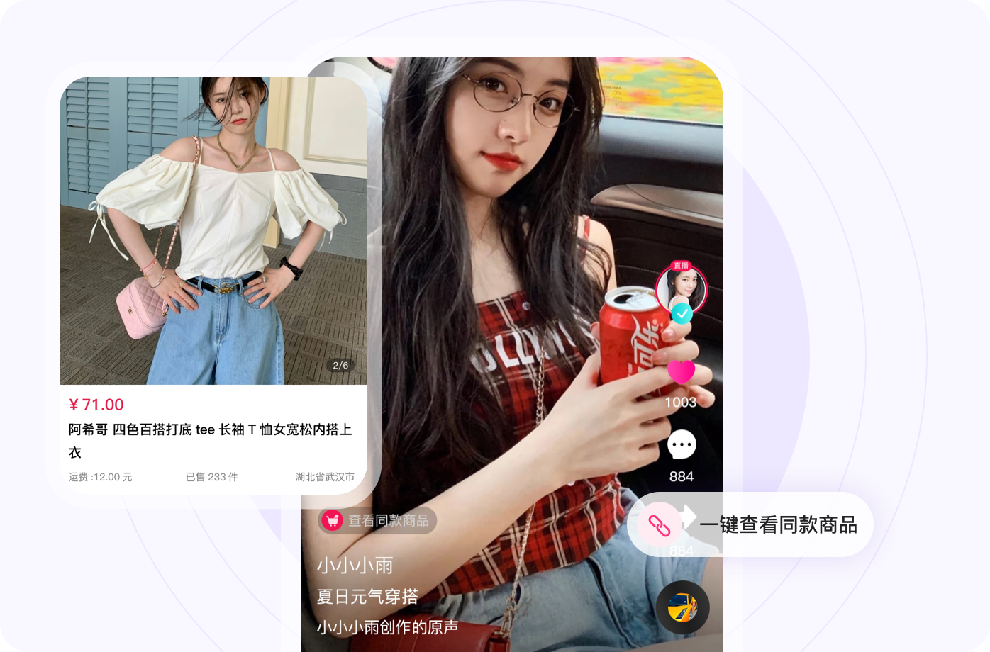 商家发布短视频时可关联商品链接,视频发布后会显示商品链接,用户点击商品链接购买同款。